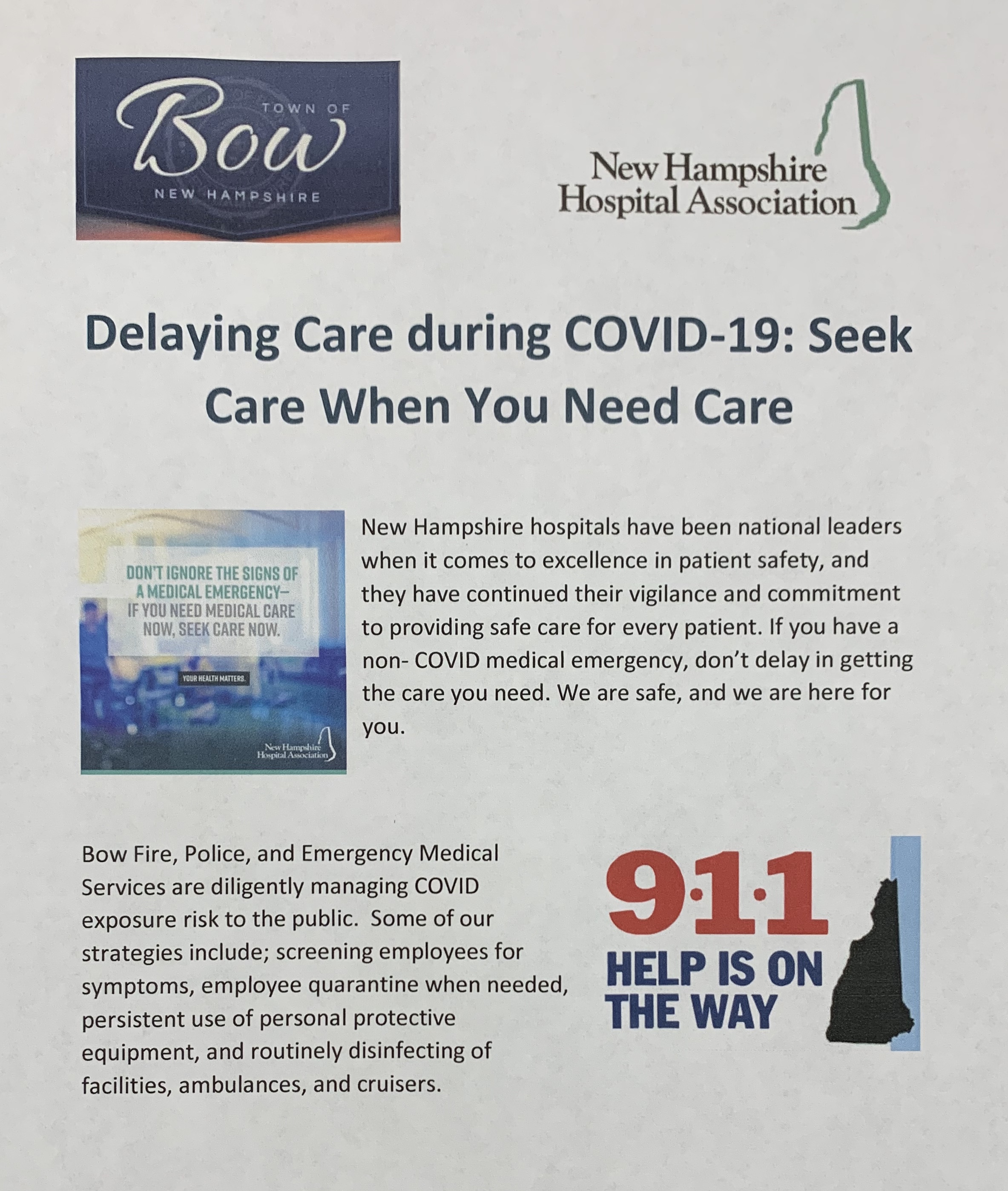 Delaying Care during COVID-19: Seek Care When You Need Care