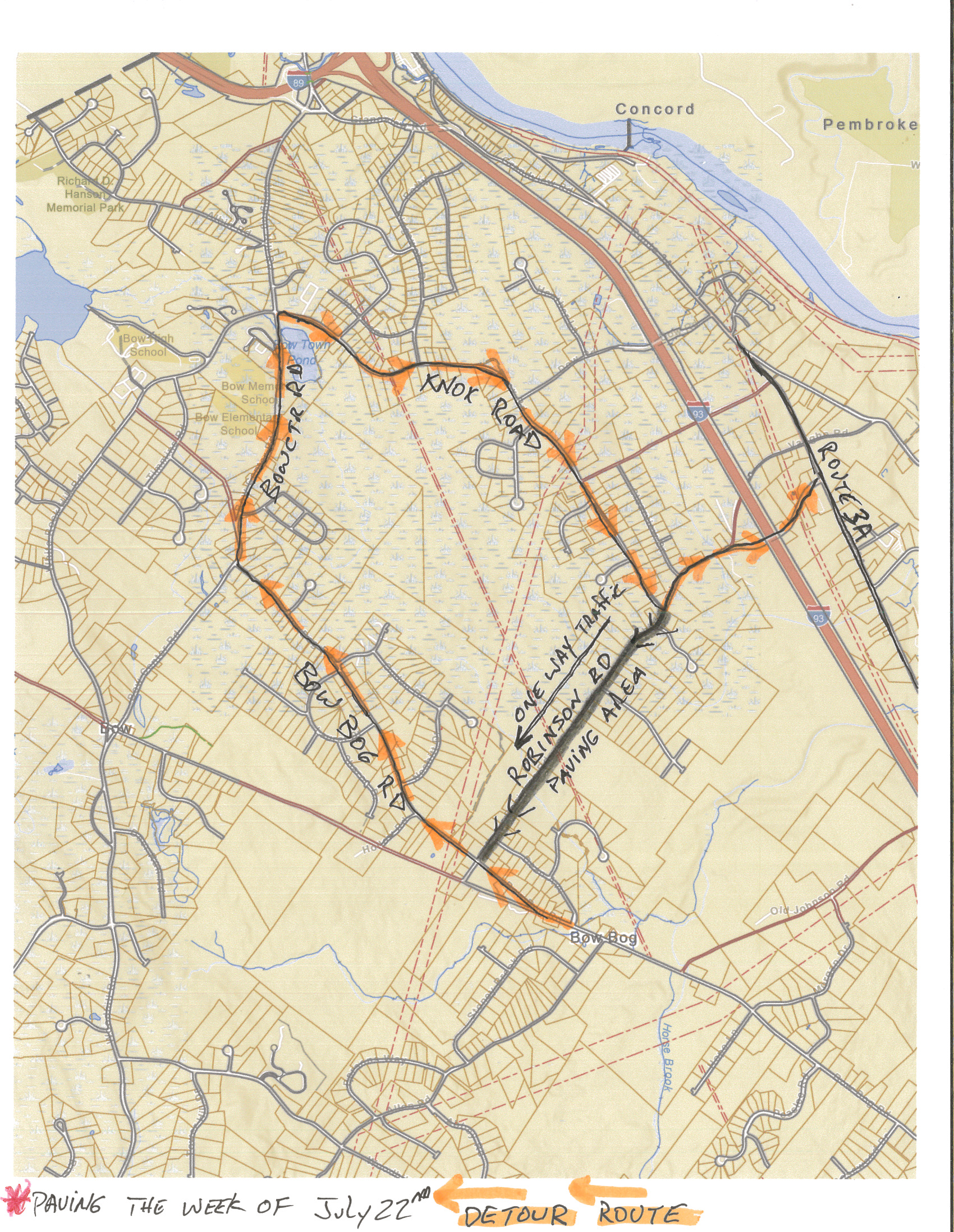 • Robinson Road - Paving is scheduled for Wednesday July 31st  &  Thursday, August 1, 2024.    (  Traffic will be restricted to One Way Only )   -   (  Knox Road to Bow Bog Road )